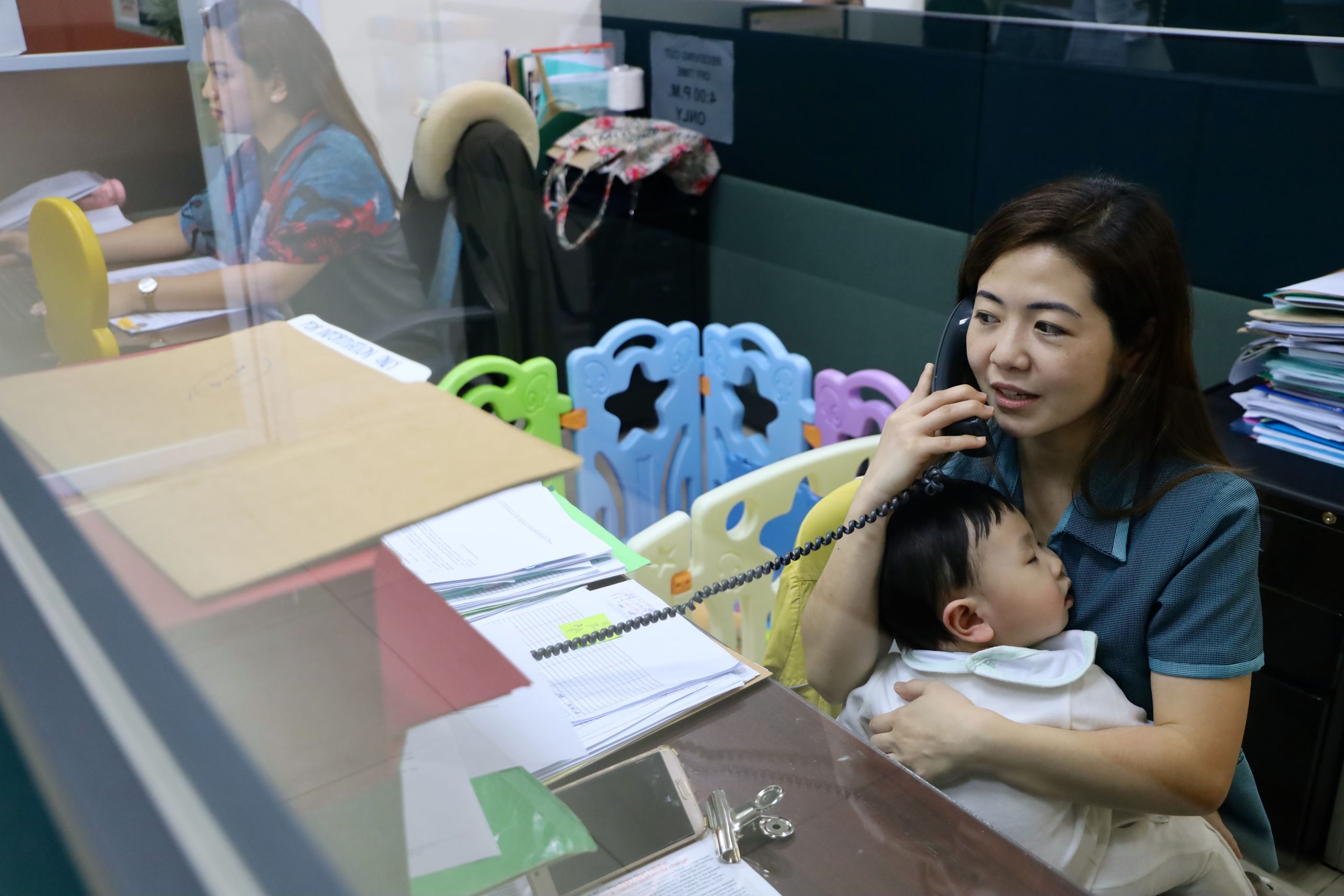 Some workplaces, like Julie’s, support mothers beyond what the law requires. Days before returning to work as an executive assistant after giving birth to her son Rijoff, Julie faced trouble finding reliable childcare. After explaining the situation to her managers, she was allowed to bring Rijoff, then three months old, with her to work. He has come to work with her every day since her maternity leave ended, allowing Julie to easily reach her goal of six months of exclusive breastfeeding.